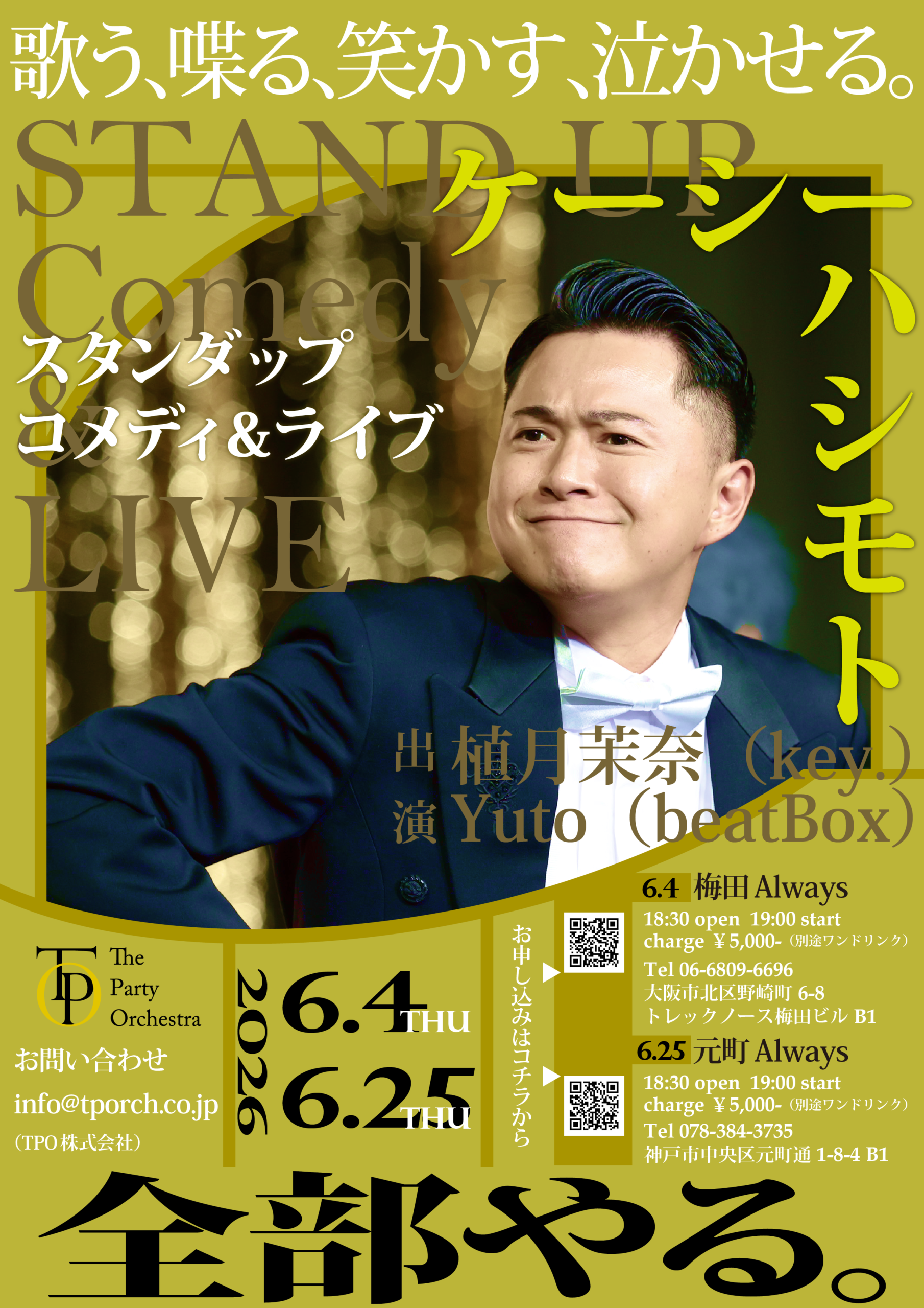ケーシーハシモト スタンダップコメディ&ライブの開催が決定いたしました!